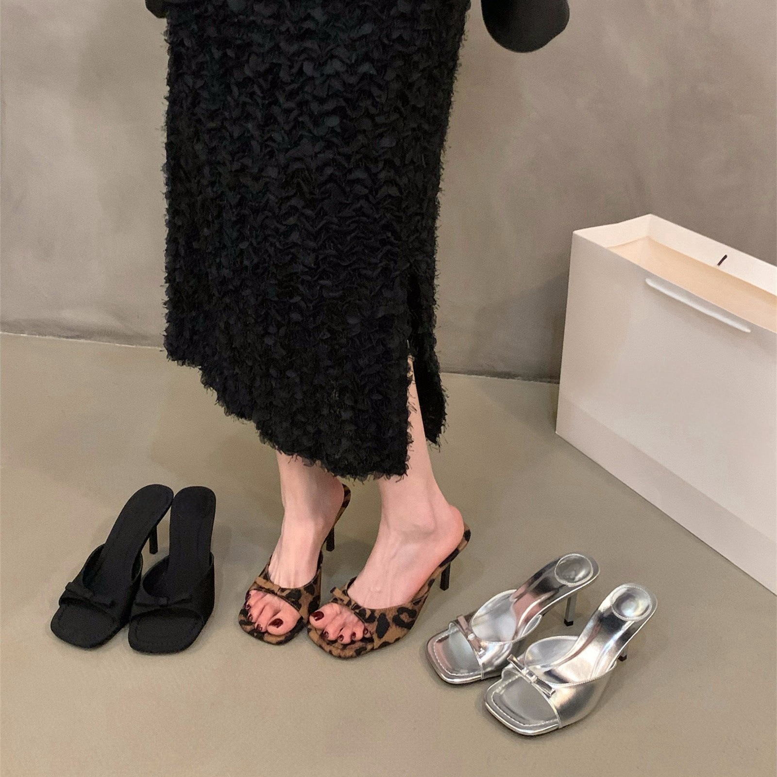 Breakj Breakj Leopard-Print High-Heeled Slippers Women's Shoes Fashion Wear 2025 New Summer Temperament French Cool Drag Sandals