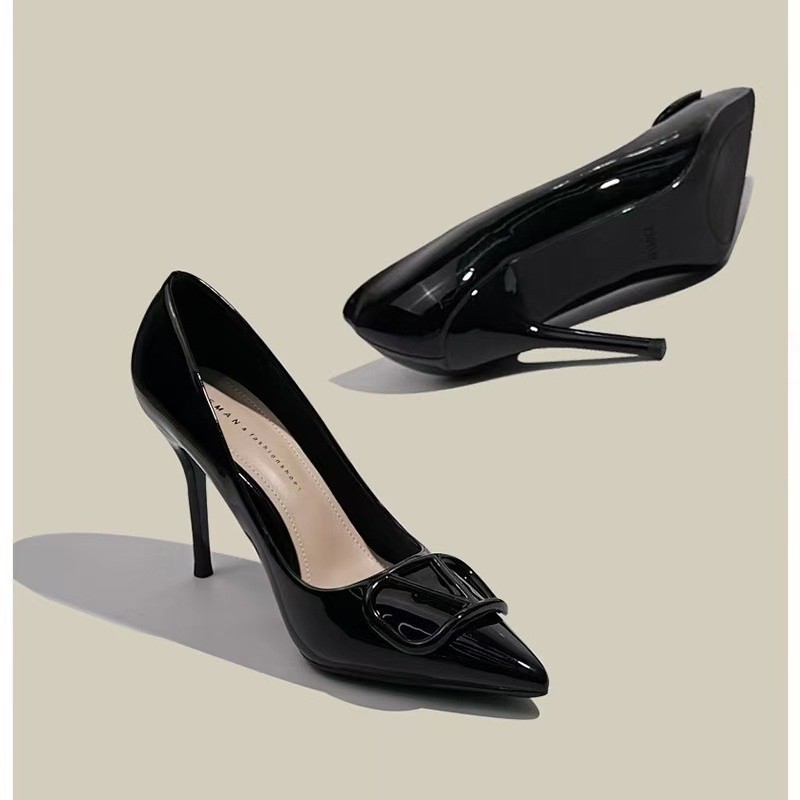 Breakj Breakj Mother Temperament Of The Same Temperament Naked High-Heeled Women 2025 New Design Sense Of Small French V Buckle Tip