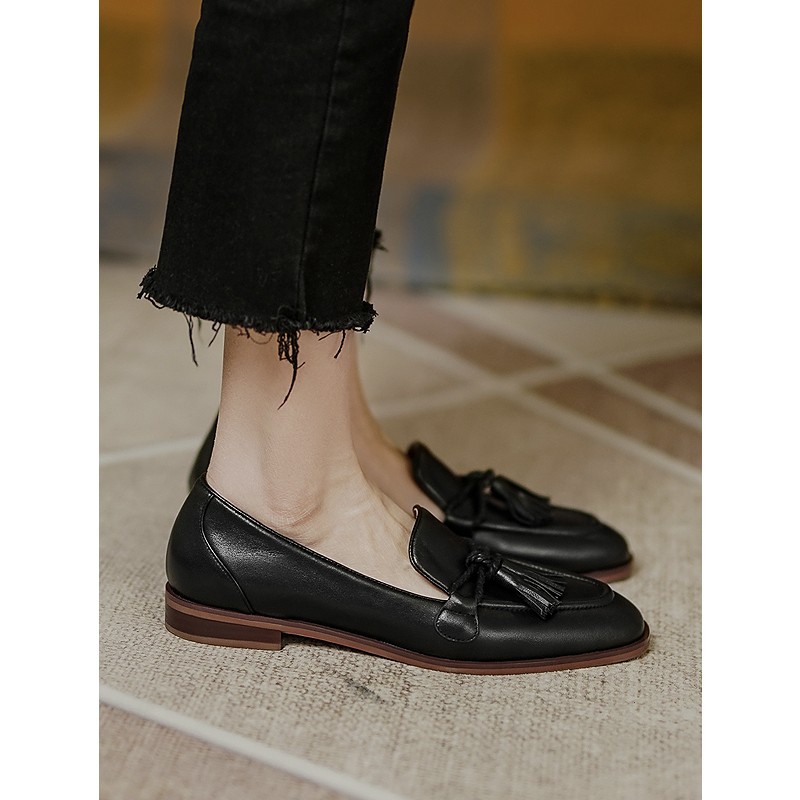 Breakj Breakj New Round Head Escrened Black Soft Bean Shoes Coarse Heel Low Heel Single Shoes Women's Casual Lefang Shoes Ladies Shoes