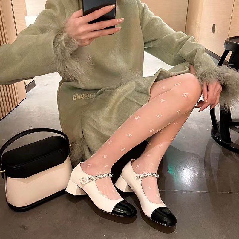 Breakj Breakj New Round Head High Heel Single Shoes JK Sweet Mary Treasure Shoes Coarse Heel Pearl Buckle Large Size Women's Shoes