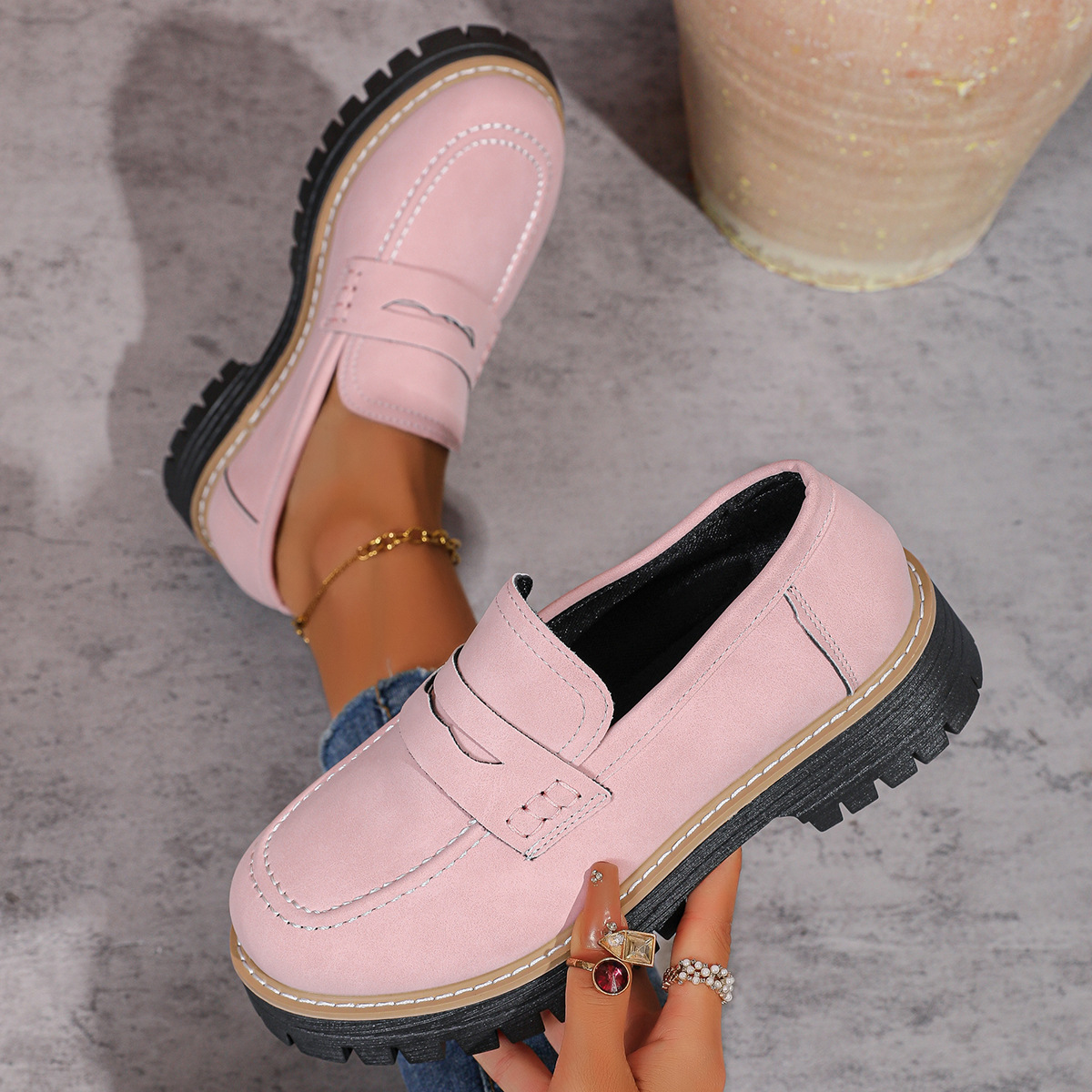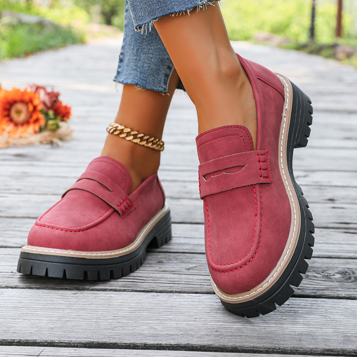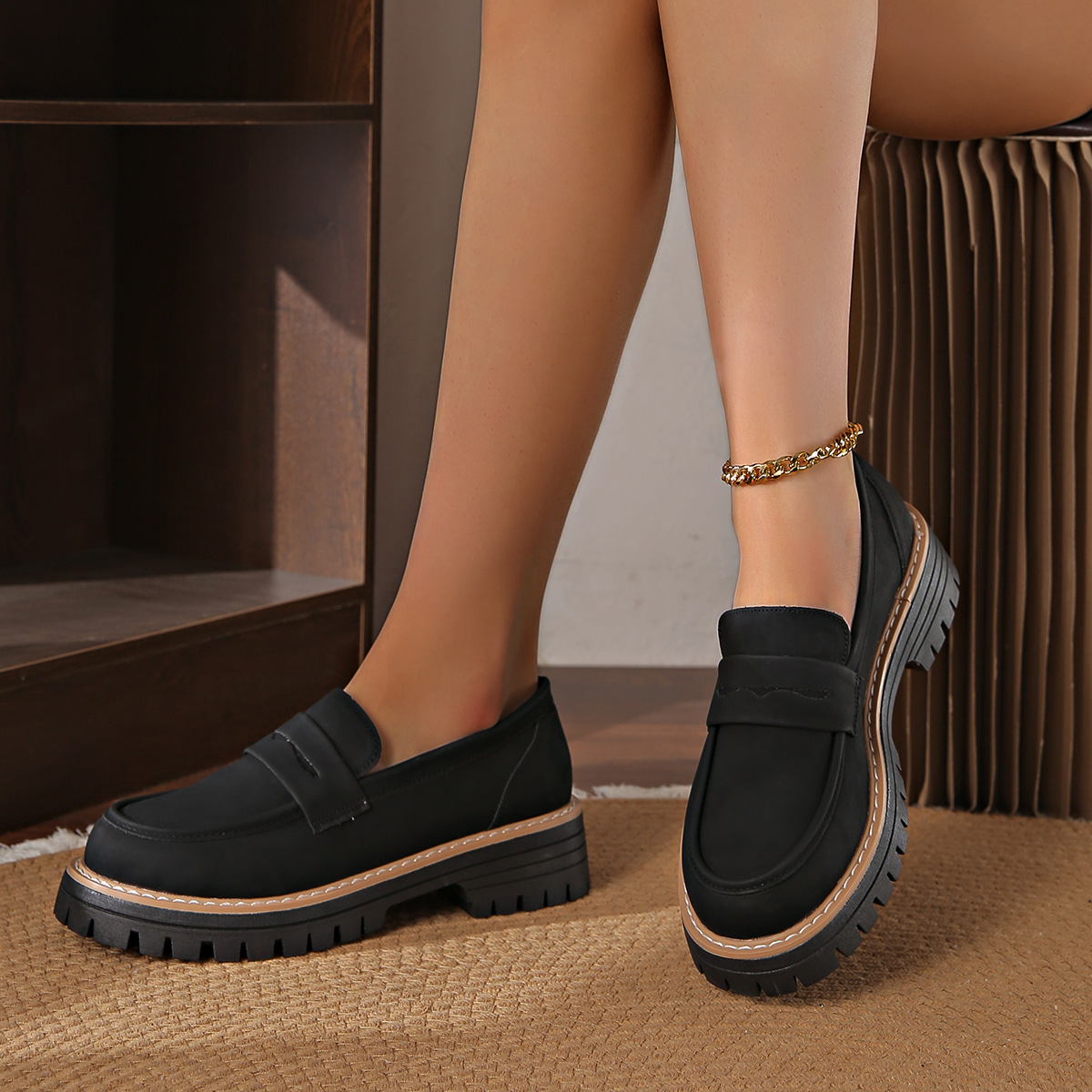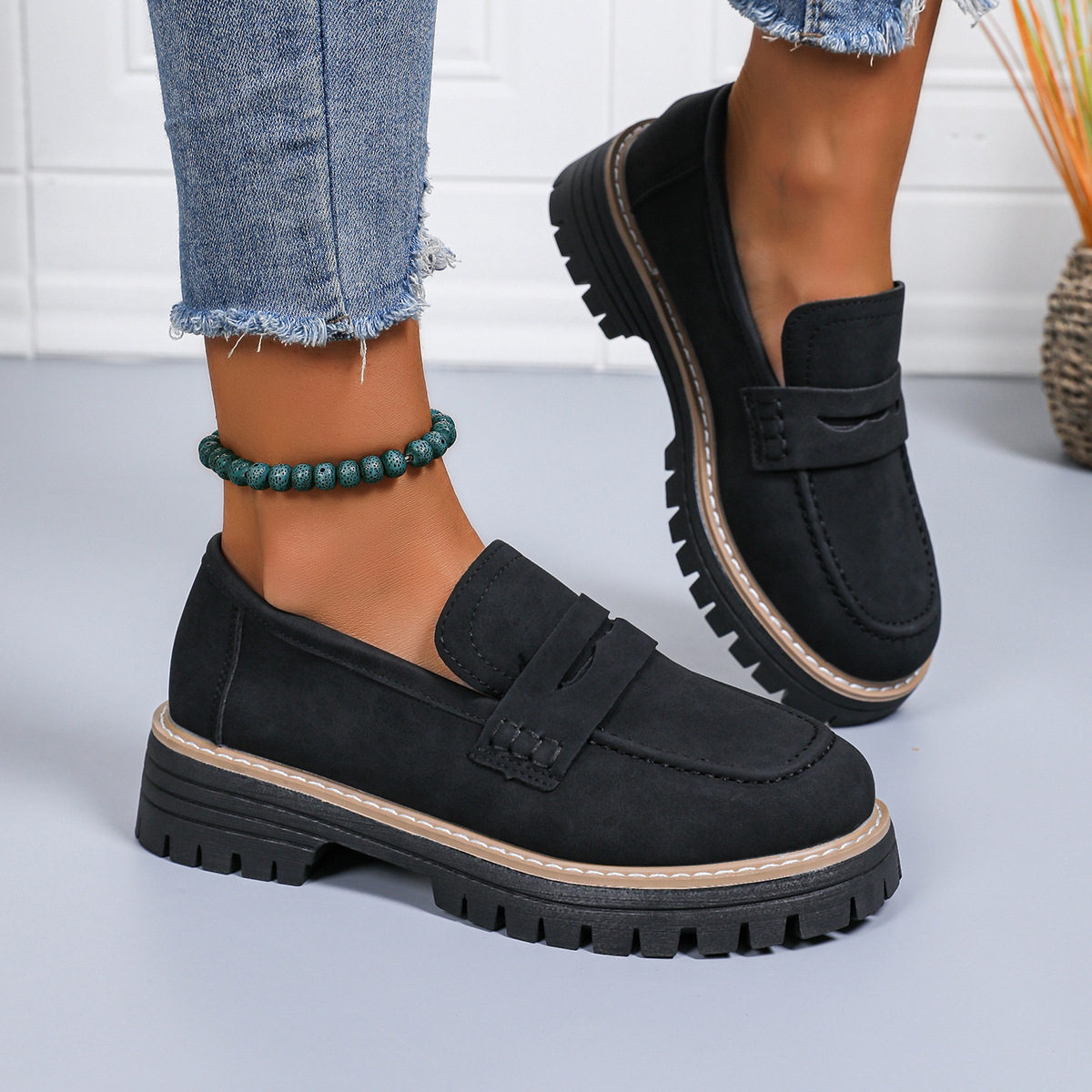 Breakj Breakj New Spring And Autumn Lefu Shoes Large-Size Leisure Grinding Sand Yingfeng Women's Shoes Thick Heel Thick Back Retro
