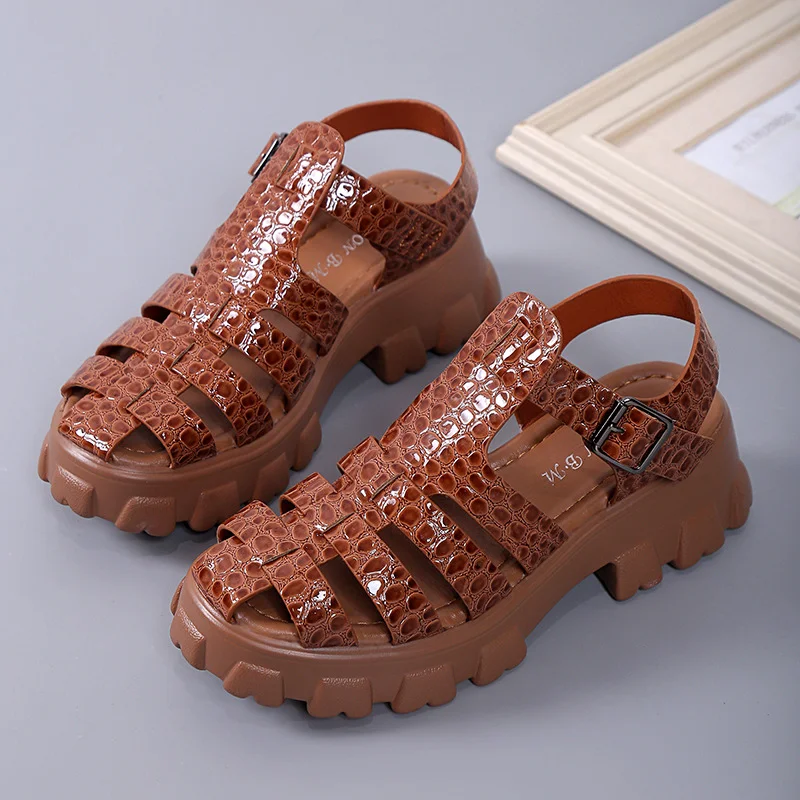 Breakj Breakj New Summer Large-Size Hollow Octfish Sandals Retro Bag Head Casual Roman Sandals Women