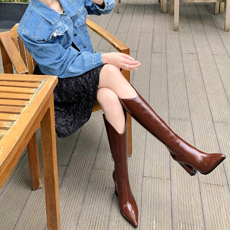 Breakj Breakj New White Boots Women High And Knight Boots Coarse And Pointed Long Boots West Boots V Mouth 8Cm High Boots