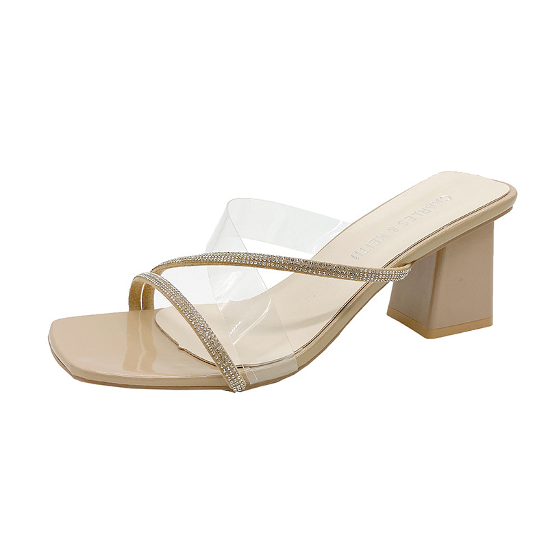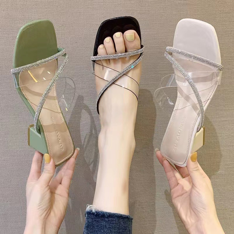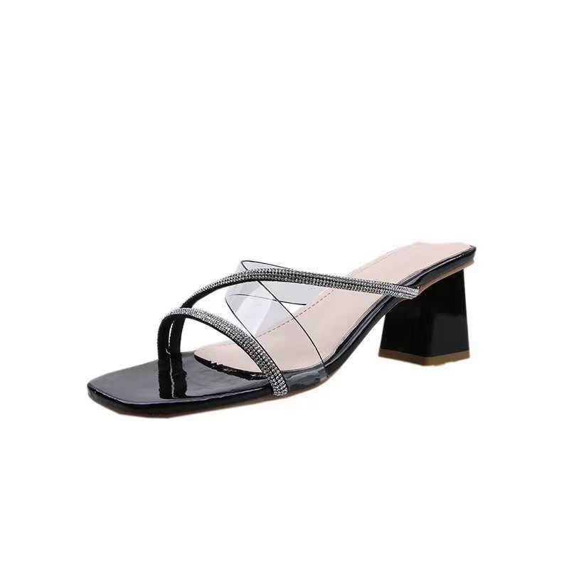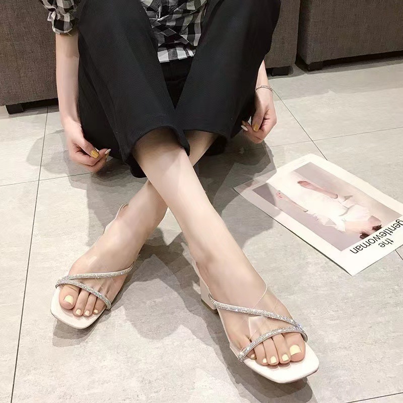 Breakj Breakj New Women's Style Coarse And Slippers Korean Version Of Simple Fashion Transparent Cool Slippers Outside Wearing The Front Half Slippers High