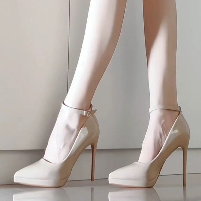 Breakj Breakj Patent Leather Buckle Super High Heel Sexy Name Waterproof Table High Heel Fine Temperament Working Shoes