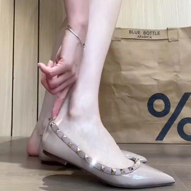 Breakj Breakj Rivet Single Shoes Fender French Temperament Piercing Wearing Willow Dingy Shoes Evening Evening Wind Gentle Nude Flat Shoes Women