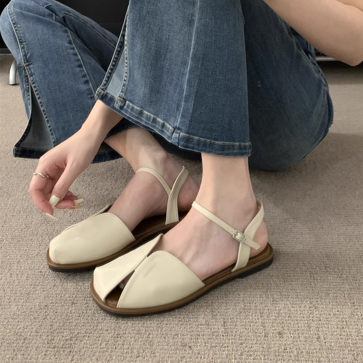 Breakj Breakj Sandals Women 2025 New Summer Korean Version Of The Sen Series Retro Fairy Wind Casual Soft Flat Bottom Roman Shoes
