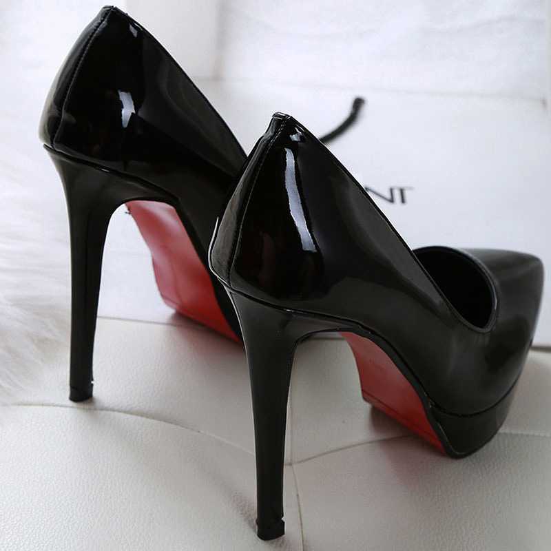 Breakj Breakj Sharp Temperament Ultra-High Heel Shoes Waterproof Table Fine Heel Night Shop Patent Leather Single Shoes Women Spring And Autumn Pink 12Cm Shallow Mouth