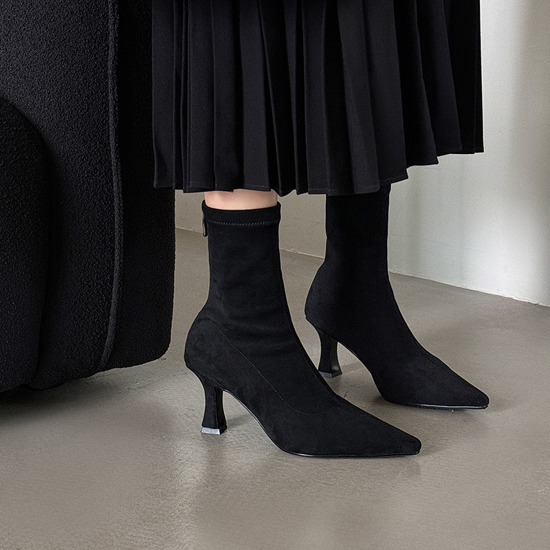 Breakj Breakj Short Boots Women Autumn And Winter Commute High And Bare Boots Korean Version Of Thin Skinny Boots Tips And Elastic Socks Boots