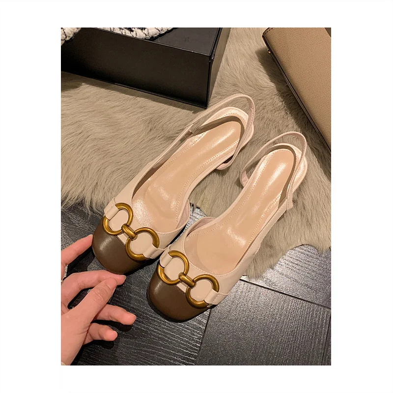 Breakj Breakj Show Temperament! Metal Buckle Small Fragrant Wind Bag Head Sandals Women Flat Bottom French Retro Color After Empty Single Shoe Tide