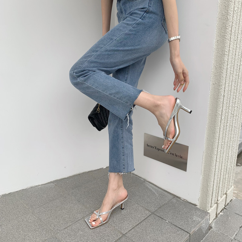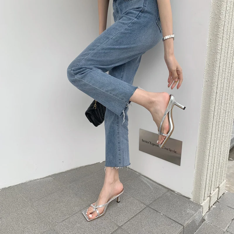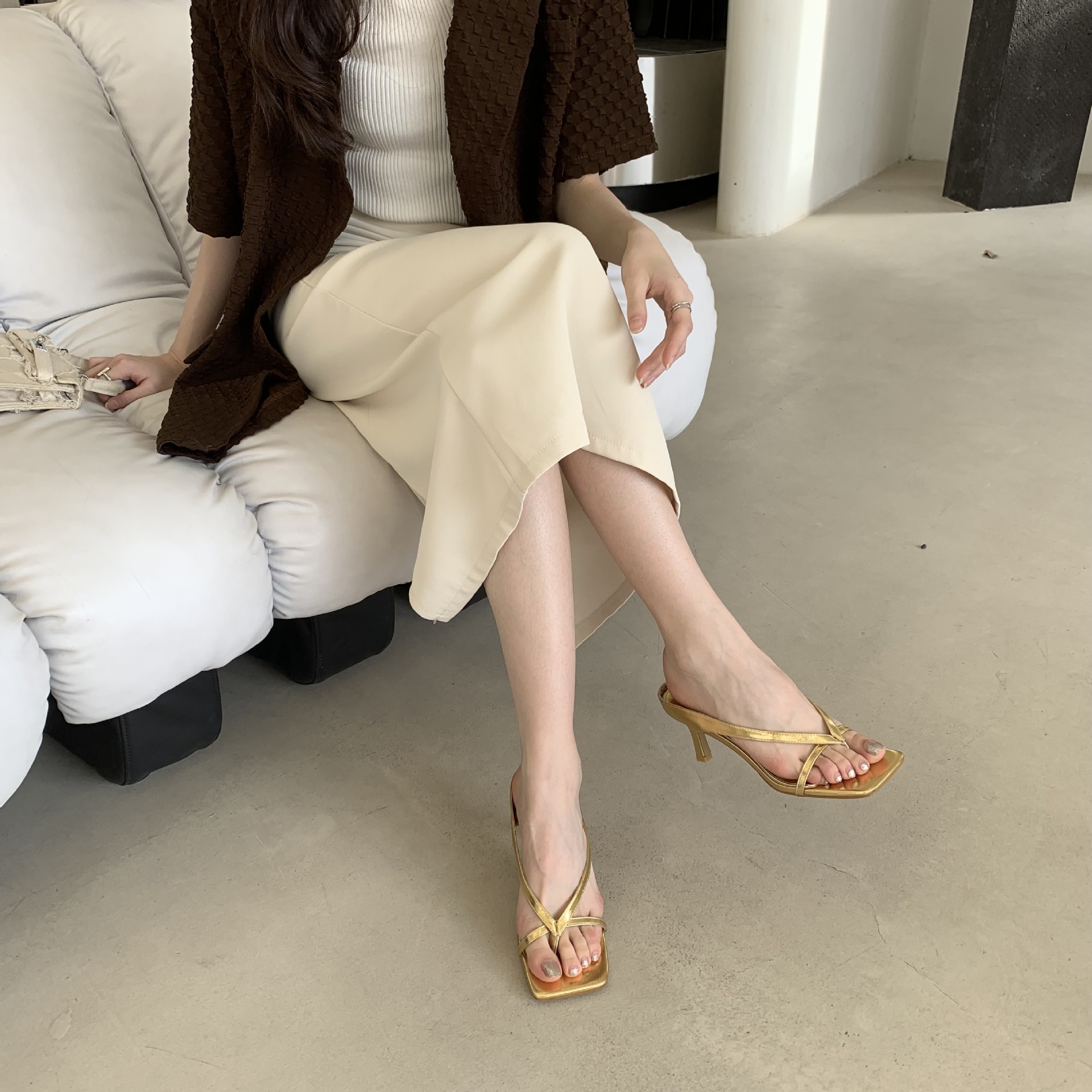 Breakj Breakj Skin Net Red Heel High Heel Slippers Women Wear 2025 New Gentle Square Head With Sandals Thin Heel
