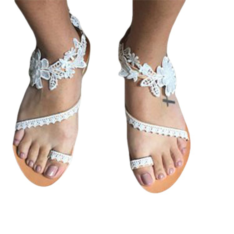 Breakj Breakj Solid-Colored Lace Lace Flowers Flat Sandals Large Size