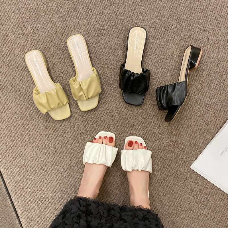 Breakj Breakj Spring And Summer New High-Heded One-Word Slippers Women's Head Lazy Half-Fashion Folds Wearing Sandals Children