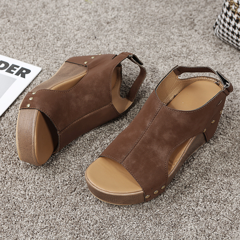 Breakj Breakj Spring And Summer New Rivet Slope And Fish Mouth Sandals Women Large Size Waterproof Table Hollow Thick-Soled Women Sandals