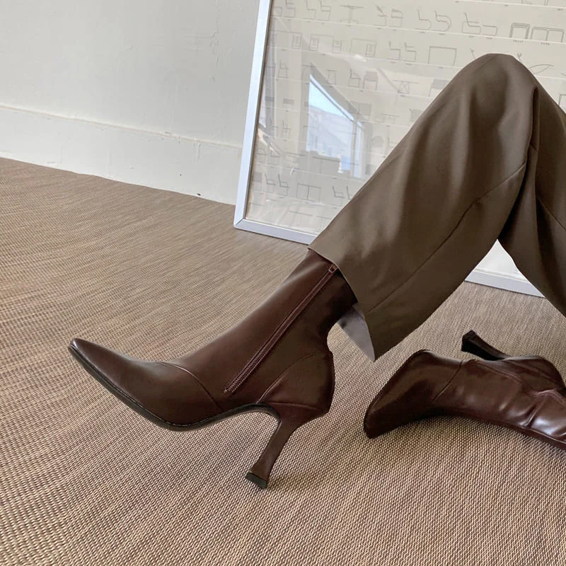 Breakj Breakj Square Head Brown High-Heeling Boots Women 2025 New Autumn And Winter
