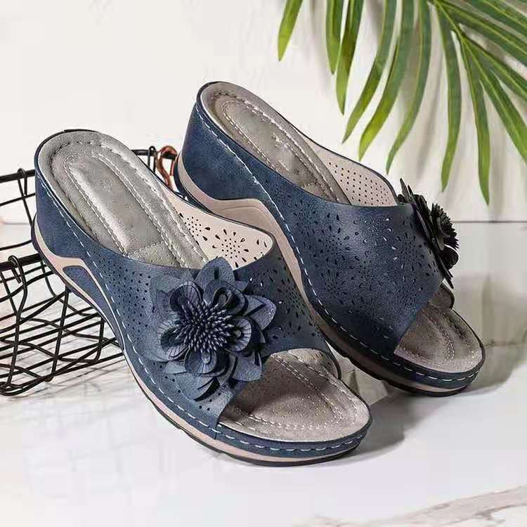 Breakj Breakj Summer New Slope With Flower Fish Mouth Large-Size Slippers Car Sewing Hollow Women's Leisure Cold Slippers