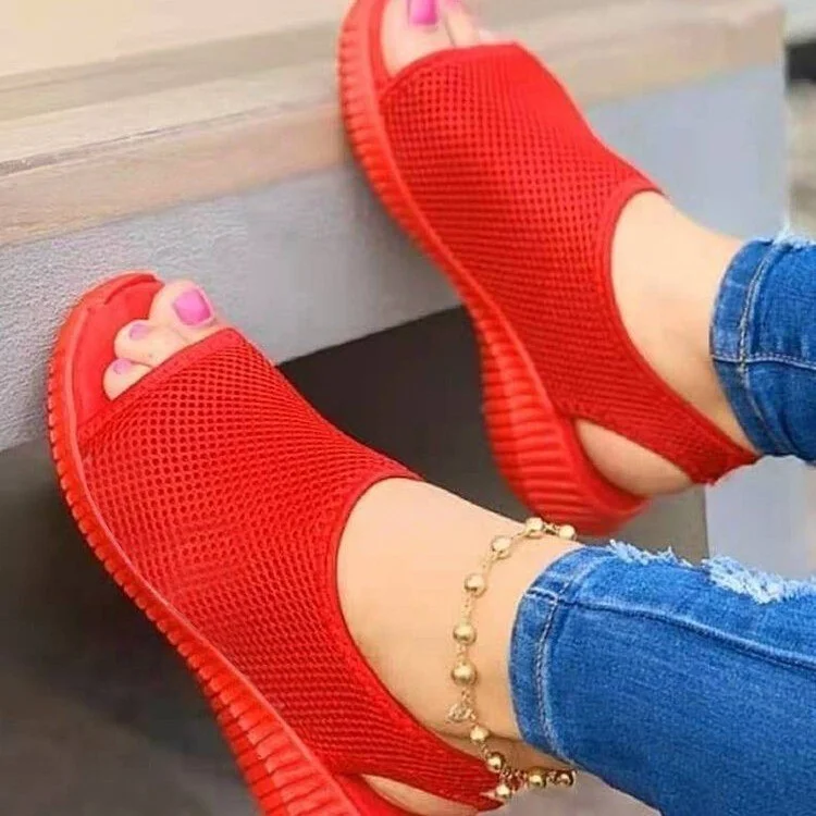 Breakj Breakj Summer New Thick-Soled Net Surface Knitted Fish Mouth Women's Sandals Large-Size One-Legged Pedal Women's Shoes