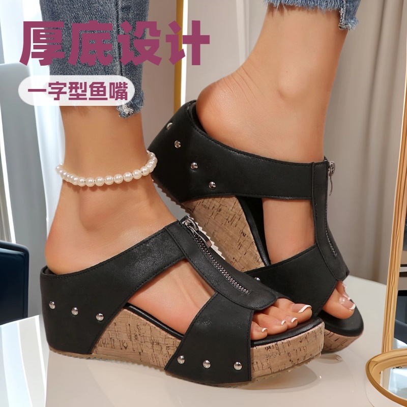 Breakj Breakj Summer New Women's Thick Bottom Slope And Slippers Large Size Fish Mouth Slope And Thick Bottom Slippers