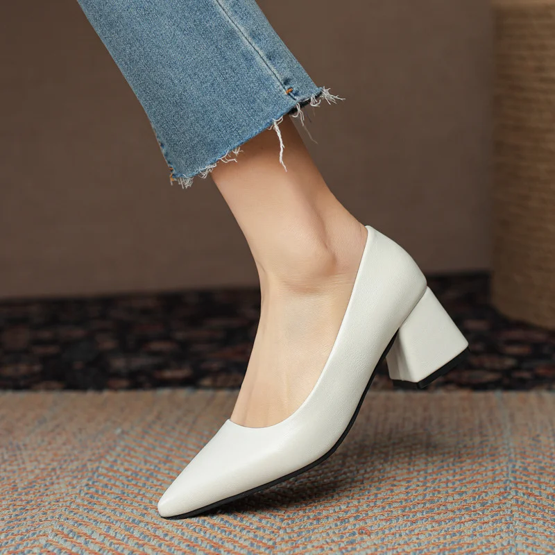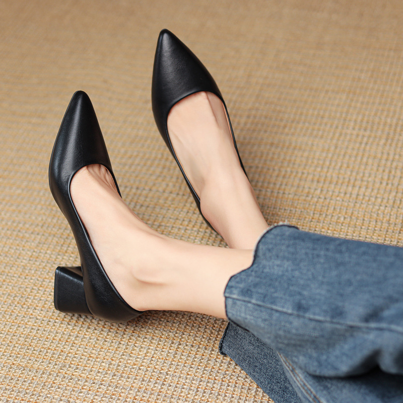 Breakj Breakj Temperament Light-Mouthed High-Heeled Shoes Korean Version Of Coarse Heel Single Shoes Four Seasons Professional Fashion Women's Shoes Size 41