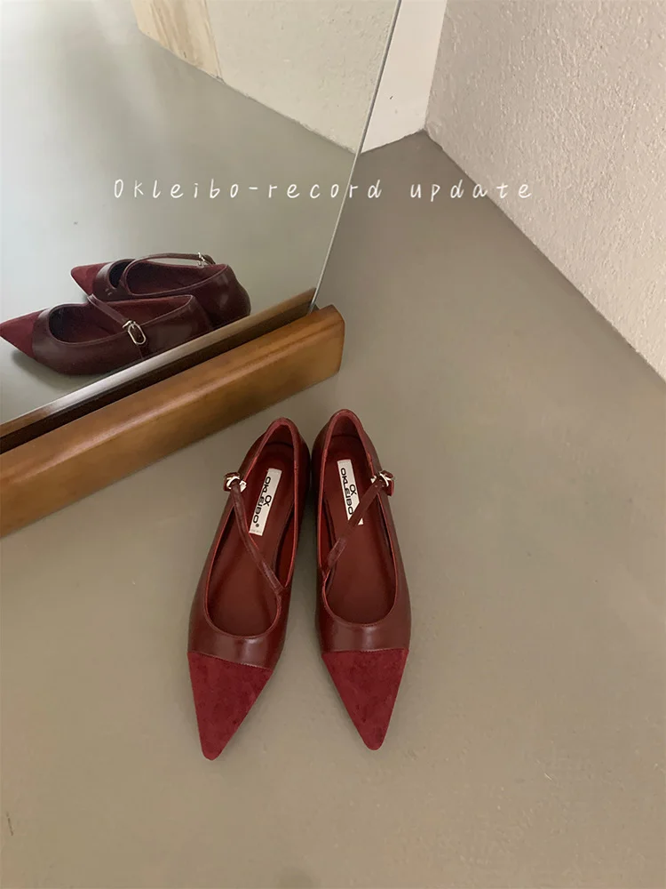 Breakj Breakj Temperament Red Single Shoe Design Sense Niche 2025 Spring And Autumn New Soft Bottom Tip Down Mary Jane Women's Shoes
