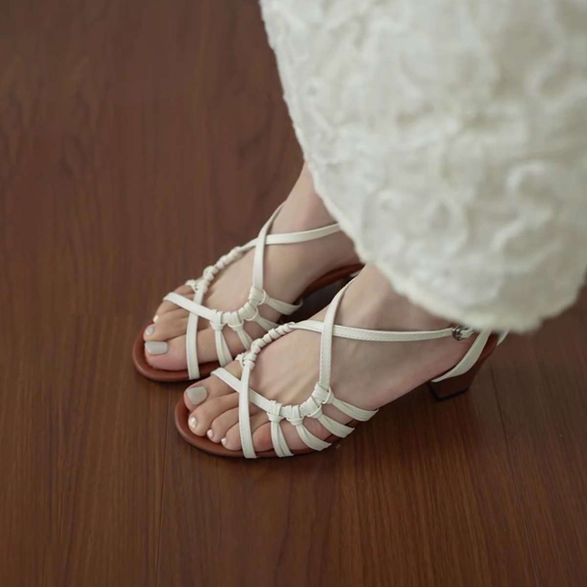 Breakj Breakj Temperament Weaving Hollow Word With Exposed Toe Coarse Sandals Set Holiday Style Roman Shoes Woman