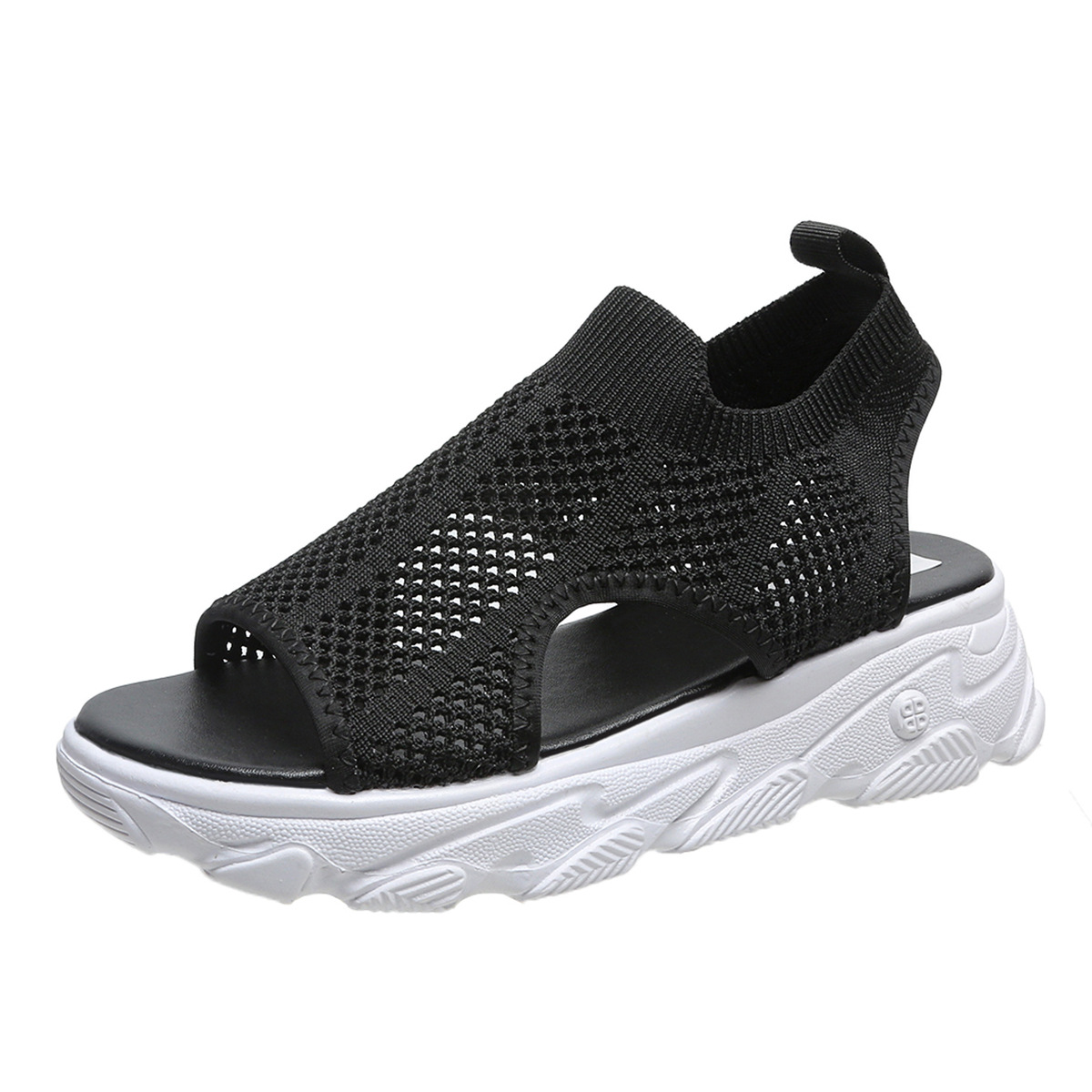 Breakj Breakj Weaving Splicing Sports Sandals Women 2025 Summer New Korean Version Of Net Yarn Hollow Women's Shoes Casual Thick-Soled Fish Mouth Women's Shoes