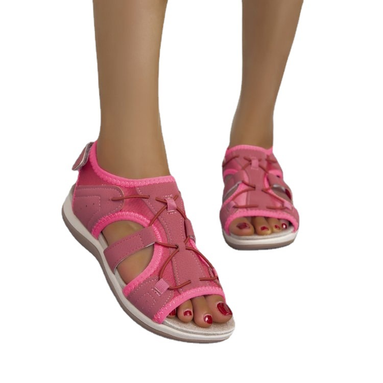 Breakj Breakj Women's Sandals 2023 Summer New Round Head Breathable Leisure Large-Size Flat-Bottomed Beach Women's Flat Bottom Comfortable