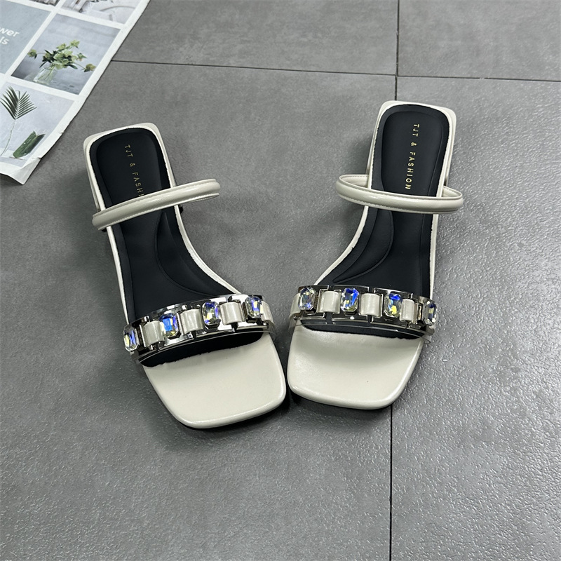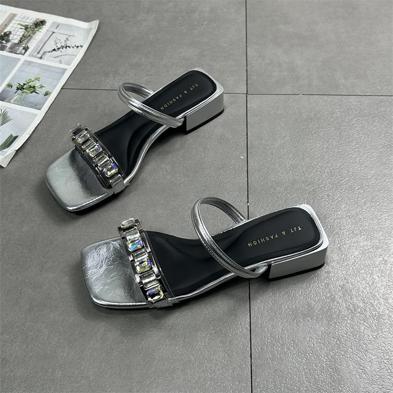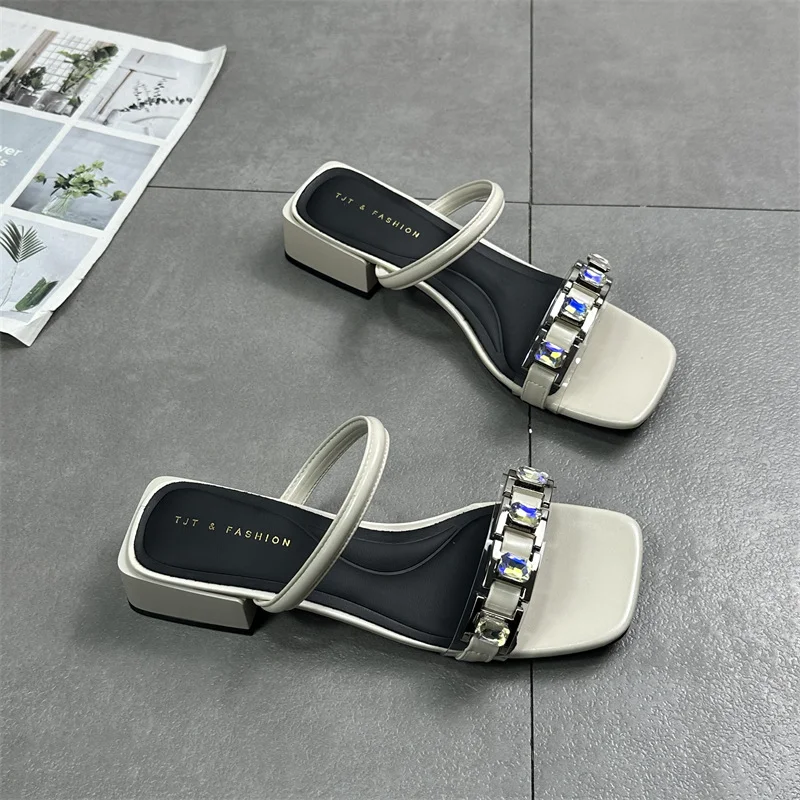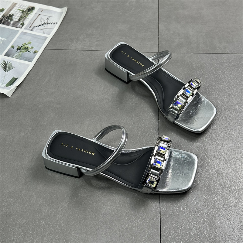 Breakj Breakj Women's Shoes 2025 Summer New Tug In The Toe Water Drill With Net Red Slippers Half A Word Drag