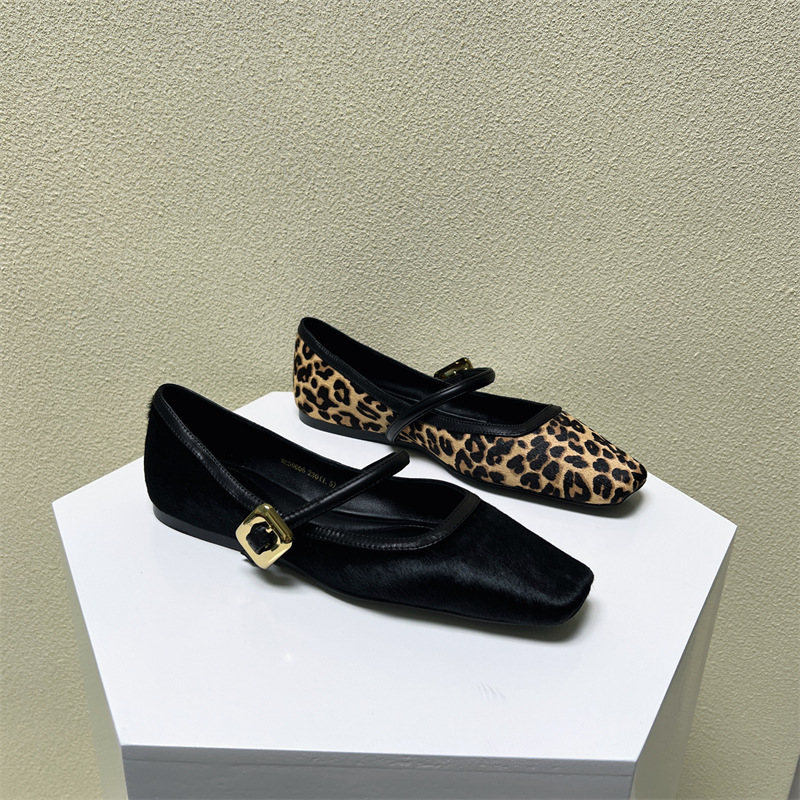 Breakj Breakj Women's Shoes In The Autumn Of 2025 With Leopard-Print Square Head Flat Shoes European Shallow Single Shoes