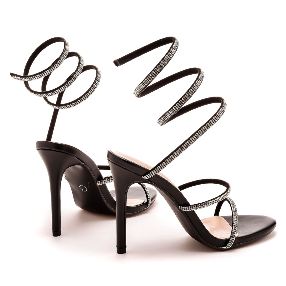 Breakj Breakj Women's Shoes Snake-Shaped Foot Wrist Around The Water Drill A Word With Thin Display High Sexy Fine Heel Roman Sandals