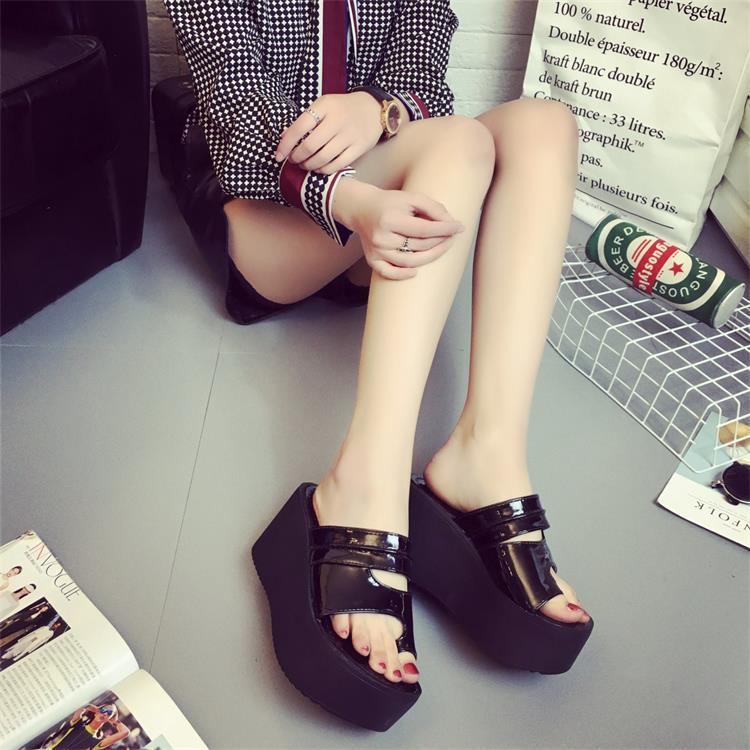 Breakj Heel Toe Slippers Female 2023 Summer Korean One-Line Bright Skin Slippers With Platform And Women's Slippers