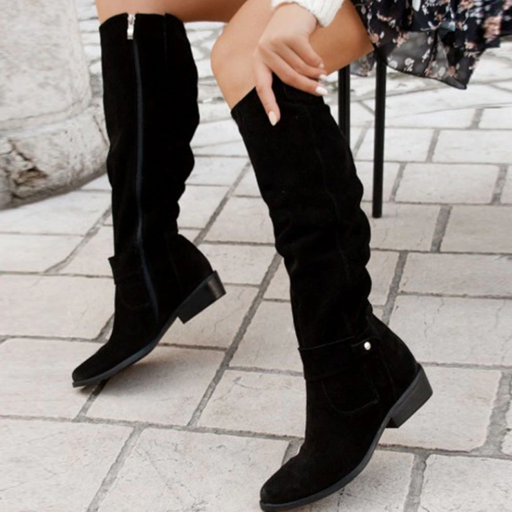Breakj On Sale Top Quality Female Cowgirls Zipper Ridding Boots For Women Chunky Heels Fashion Vintage Casual Walking Shoes