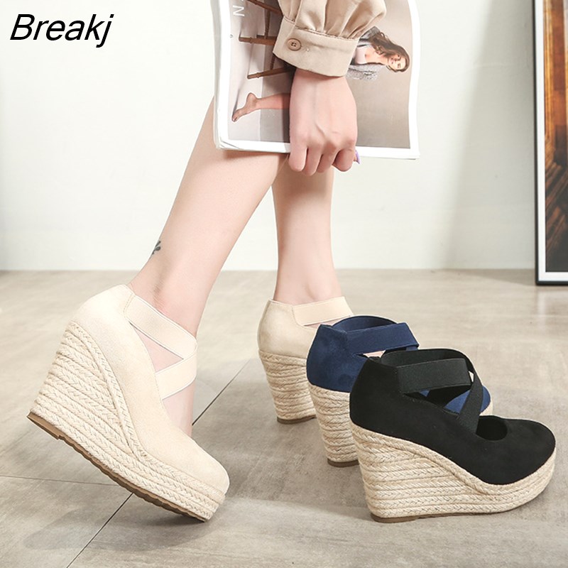 Breakj Summer Shoes Women High Heels Elegant Ladies Wedges Shoes Brand Women Pumps Platform Woman Wedge Heel 10cm A3540