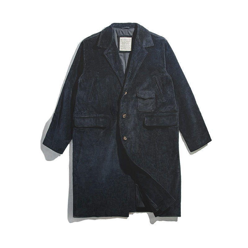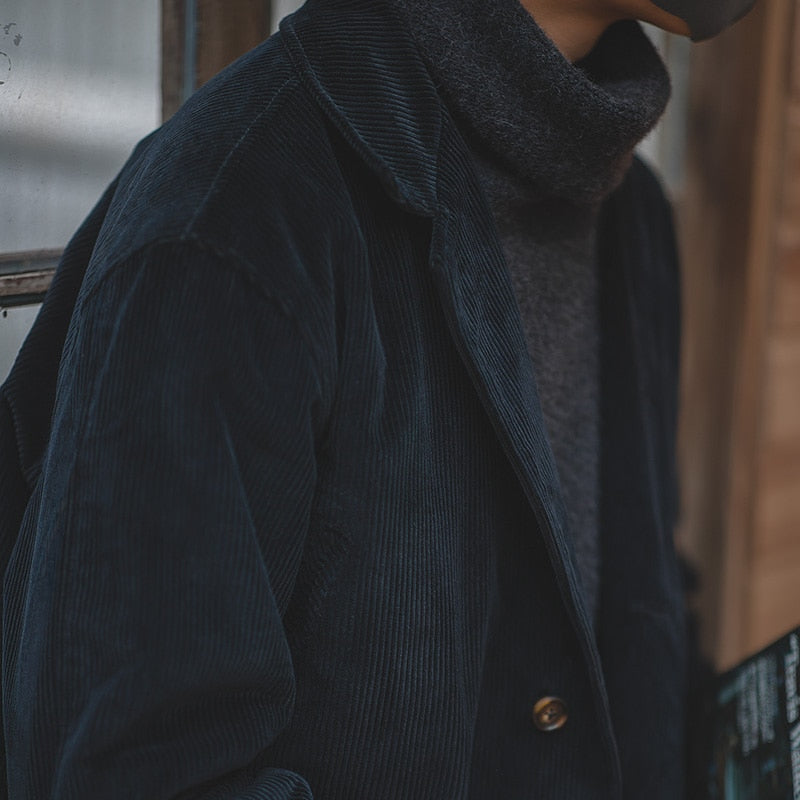 Cargo Autumn Winter Trench Velvet Men Woolen Coat Corduroy Vintage Windbreaker Turn-down Collar Solid Pocket Oversize Jacket