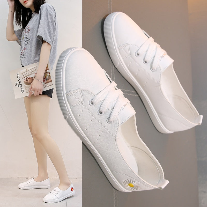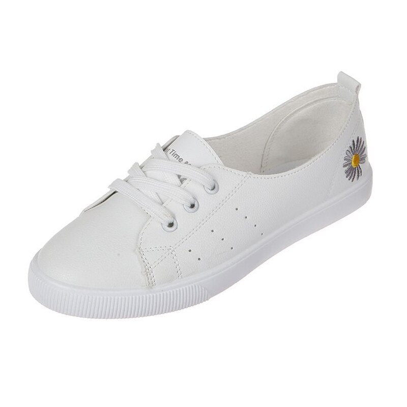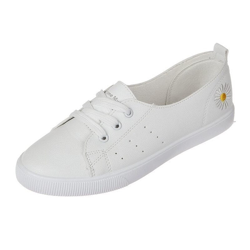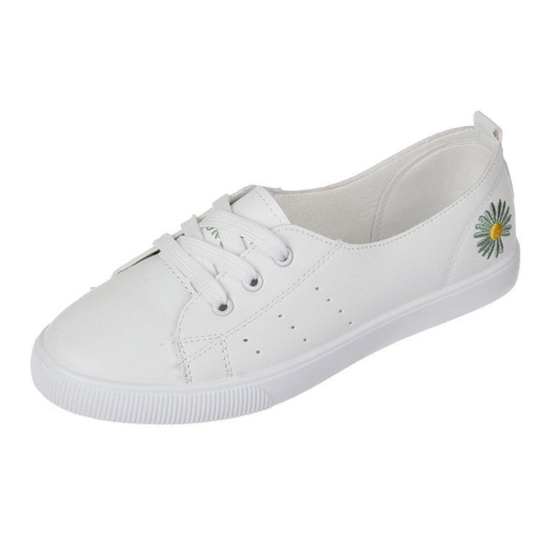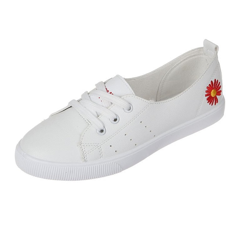 Casual Shoes Women Sneakers Fashion Embroidery Lightweight Lace Up Loafers Lady Classic White Walking Shoes School Student Flats