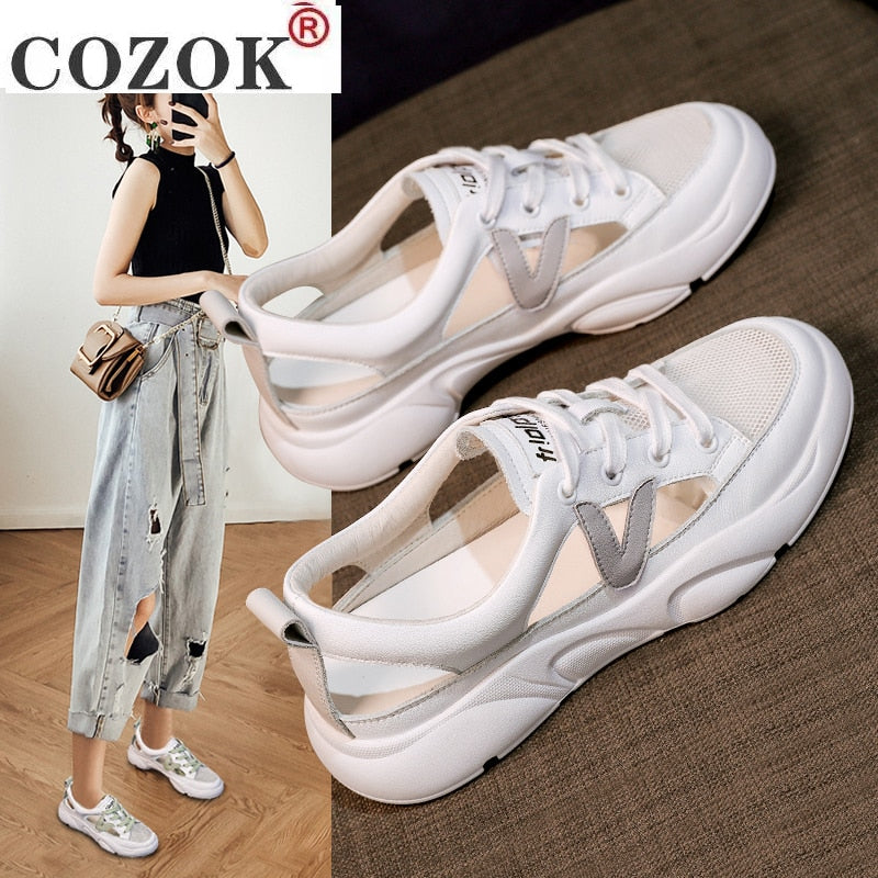 Comfort Summer Sandals Women Sneakers Mesh Casual Platform Trainers Shoes Flat Heels Shoes Female Cutout Casual Slippers
