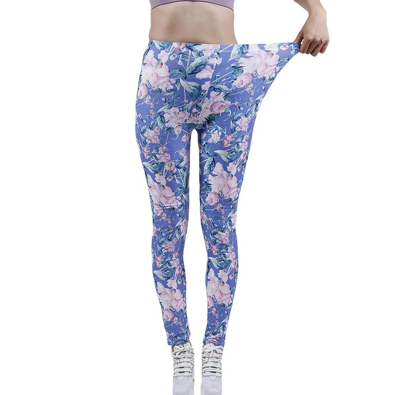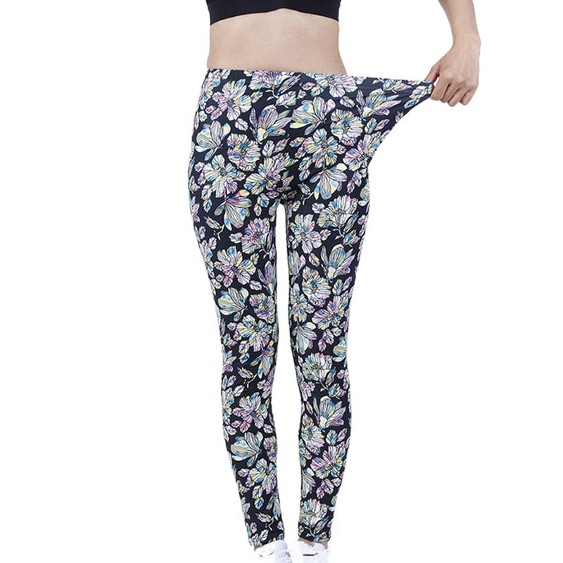 CUHAKCI Fashion Women Leggings Beautiful Leaf Floral Printing High Waist Jeggings Stretch Pant Sexy Hot Sale Clothing Mujer