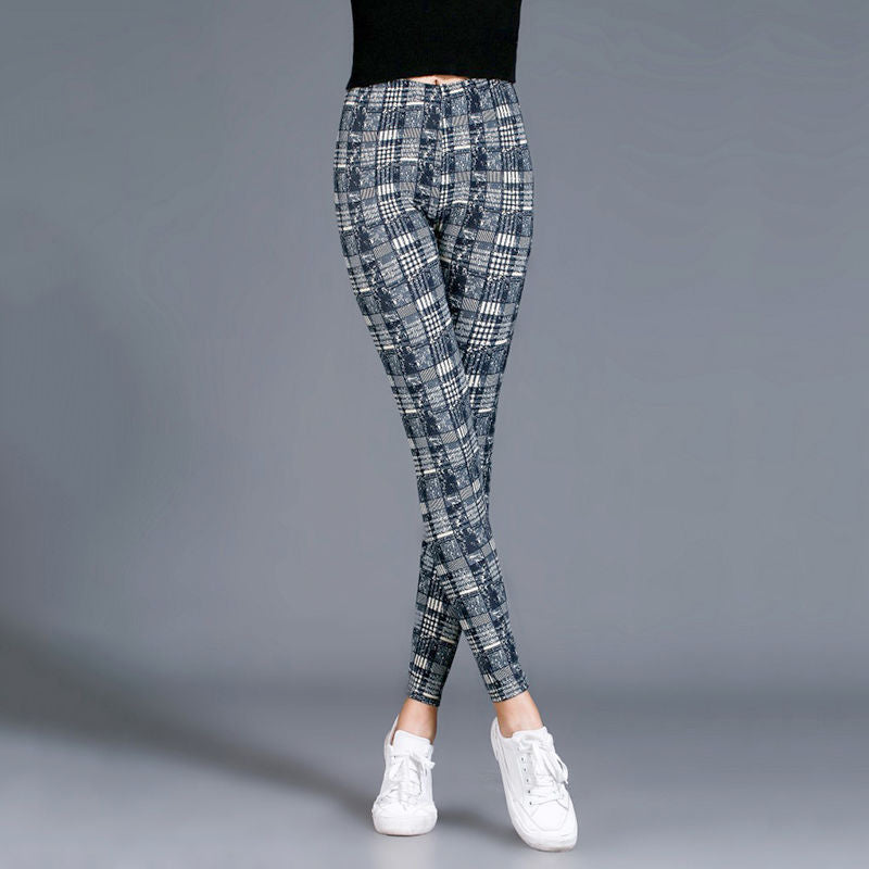 CUHAKCI Female Fitness Leggings Women Print Plaid Leggings Lady Sexy Slim Pencil Pants Push Up Elastic Waist Trousers