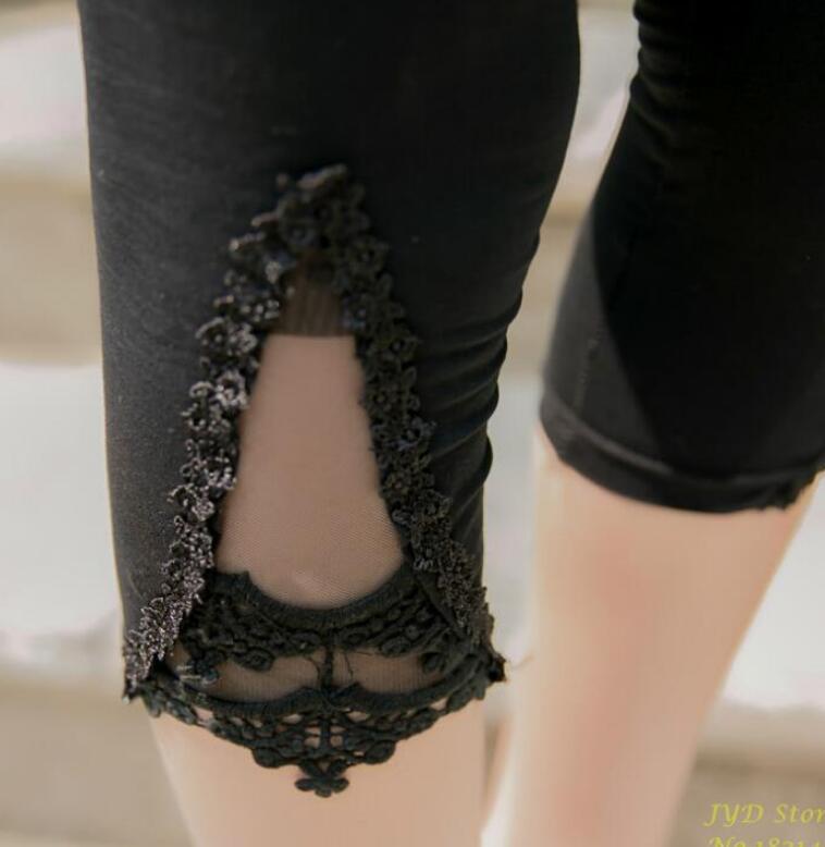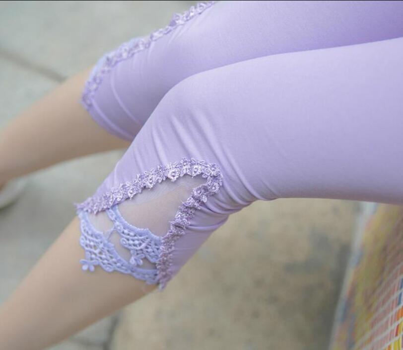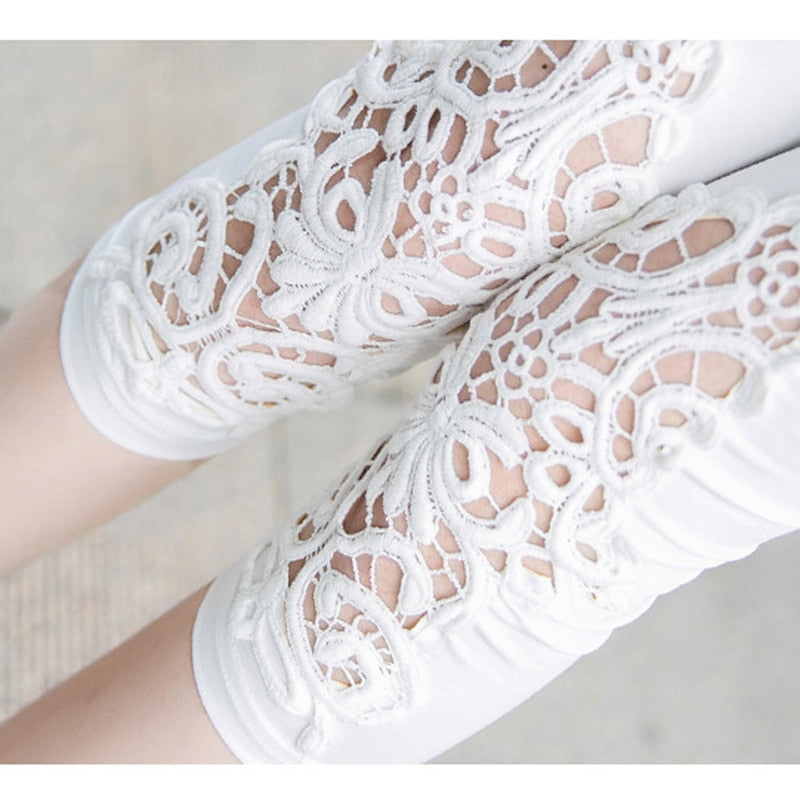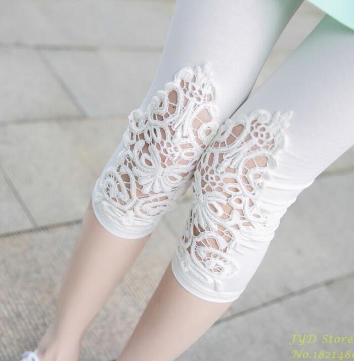 CUHAKCI Fitness Leggins Short Leggings Women Summer Lace Floral Female Casual Capris Hollow Out Slim White Black