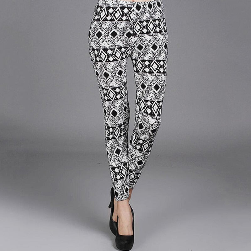 CUHAKCI Push Up Leggins Mujer Stripe Printed Leggings Women  Dot Mid Waist Polyester Fitness Pants
