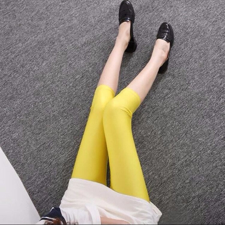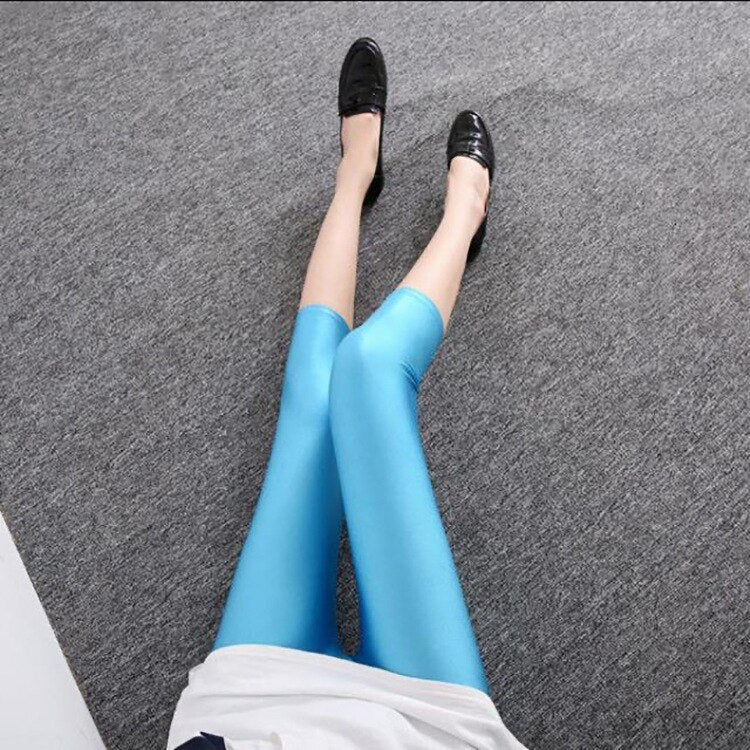 CUHAKCI Sexy Solid Candy Neon Leggings Spandex Women's Capris Stretched Jeggings Dancing Pant Fitness Capris