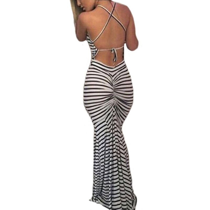 CUHAKCI Summer Long Evening Party Strap Sexy Maxi Dress Striped Women Backless Black White