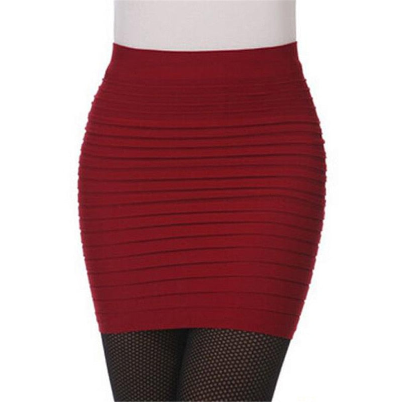 CUHAKCI Summer Skirts Sexy Short Ladies Skirt High Waist A-Line Skirts High Elastic Black Red Pleated Skirt Candy Colors