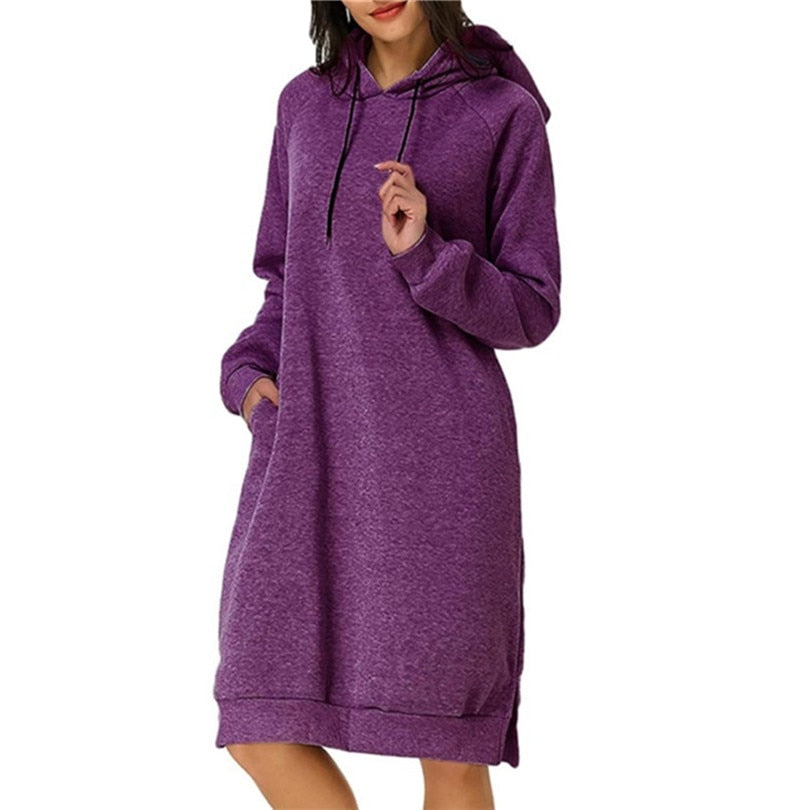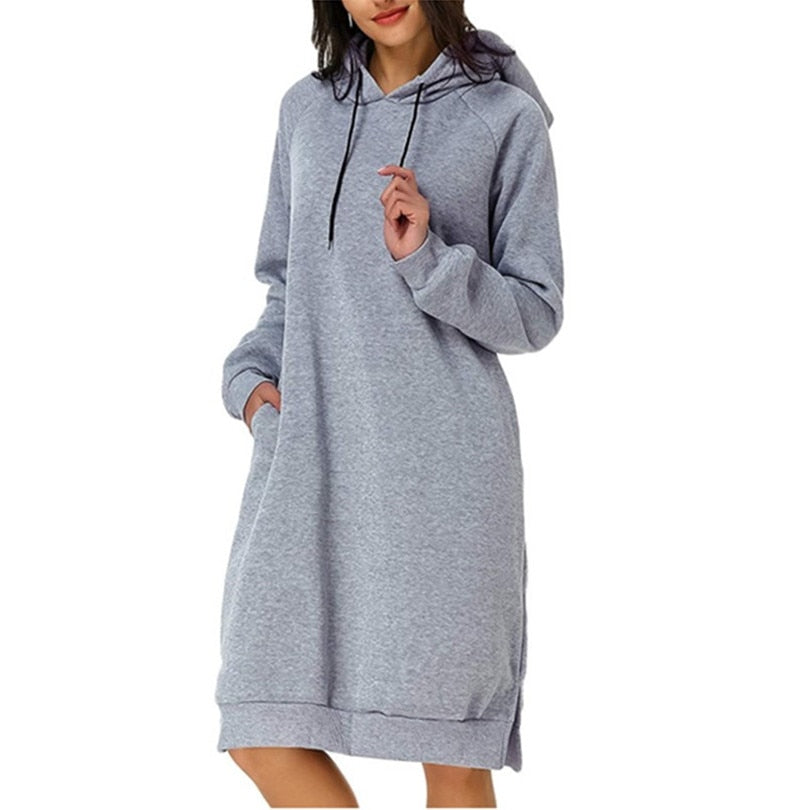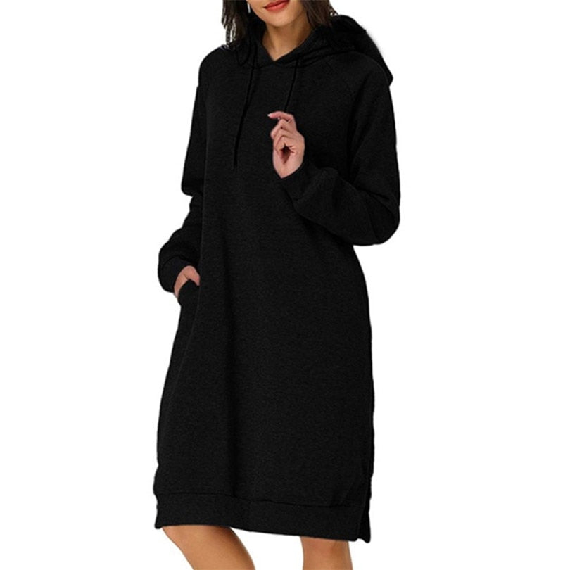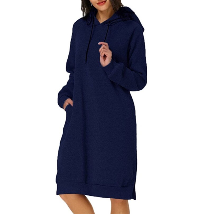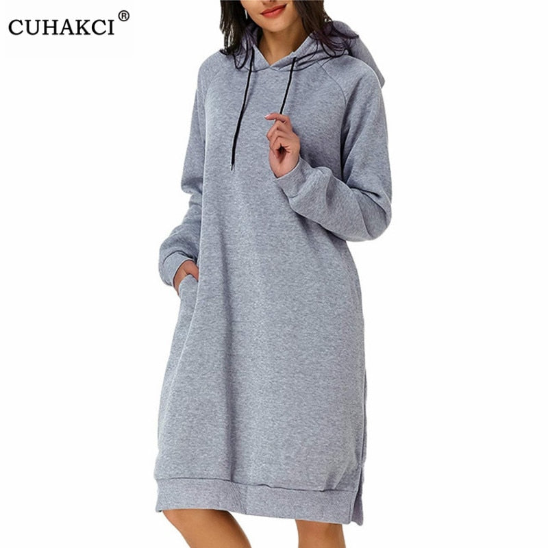 CUHAKCI Sweatshirt Dress Women Hoodies Pocket Ladies Long Sleeve Autumn Hooded Pullover Oversized Sweatshirt Loose Casual Dress