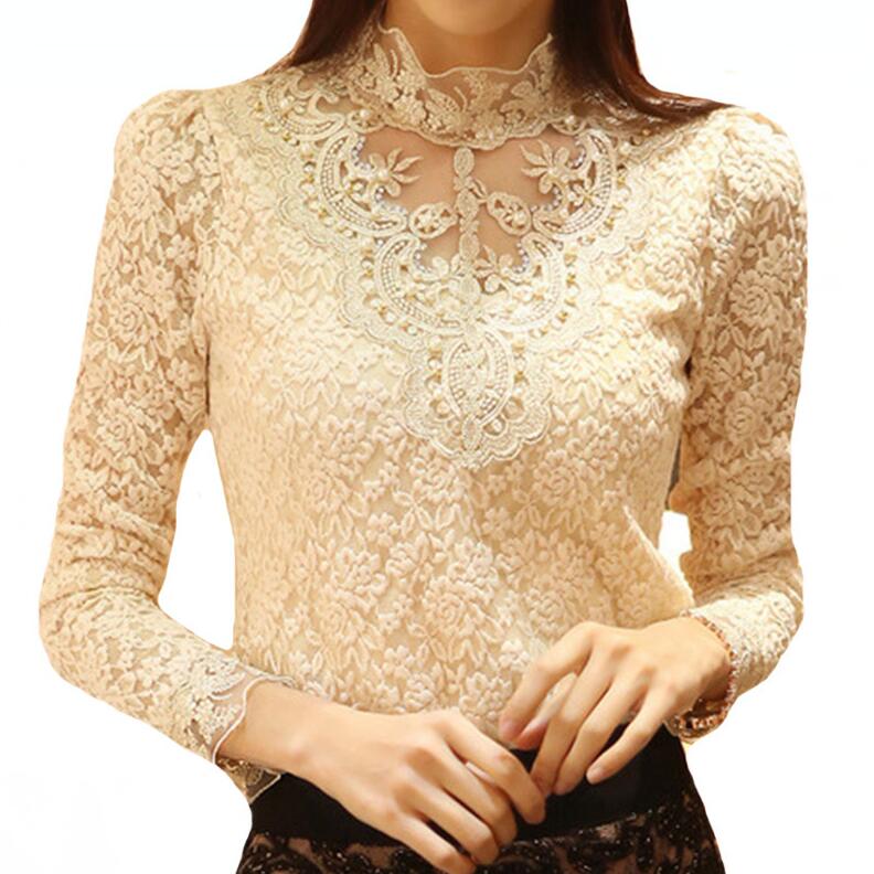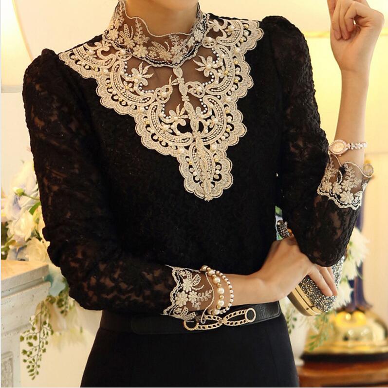 CUHAKCI White BlousesWomen Sexy Shirt Lace Blouse Autumn Spring Long Sleeve Tops Casual Elegant Female Black XXXL