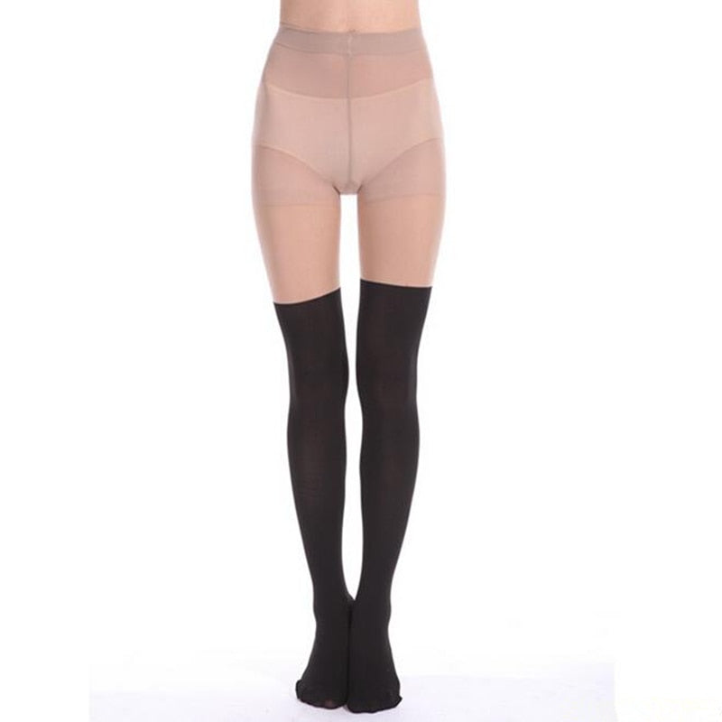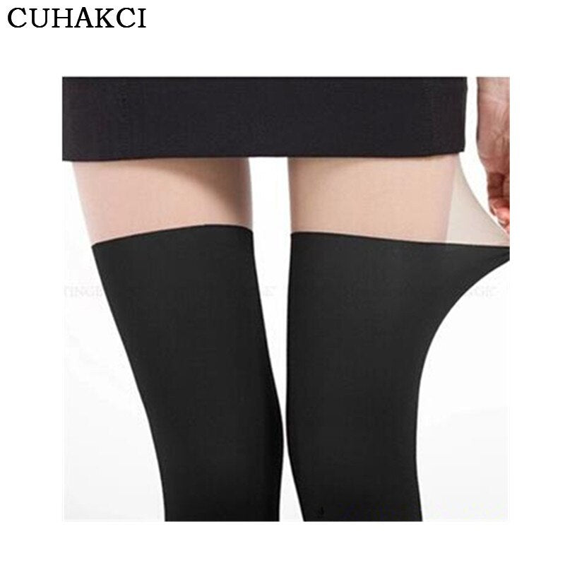 CUHAKCI Women Sexy Pantyhose Black Tinted Sheer False High Stocking Black Tight