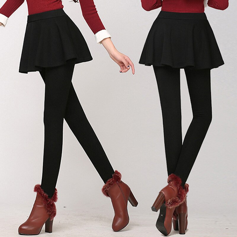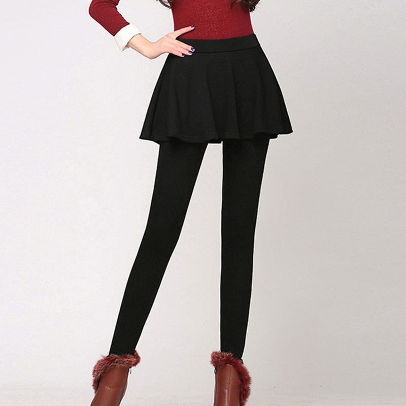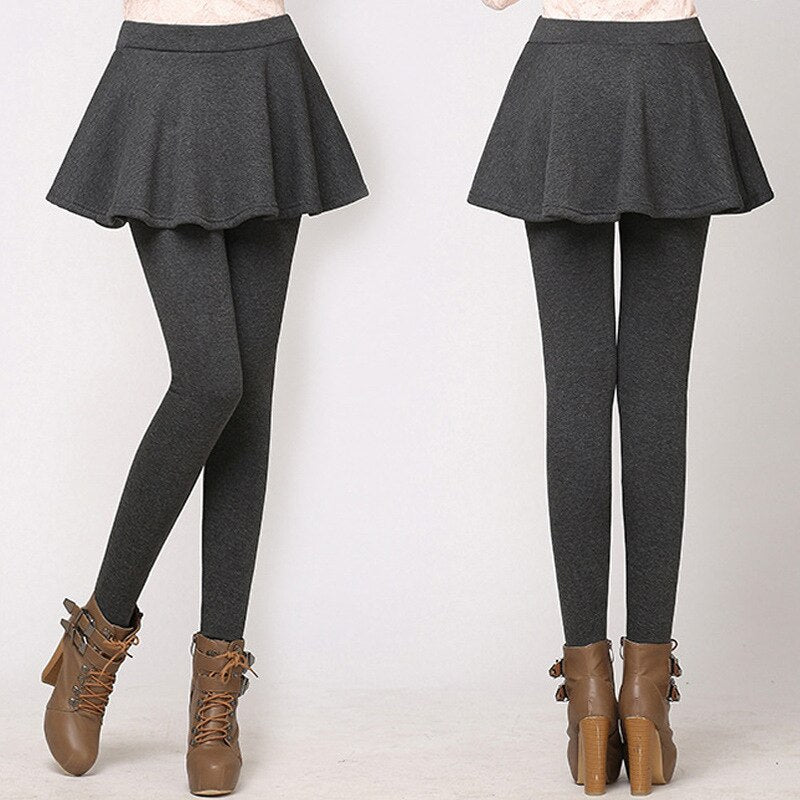 CUHAKCI  Women's False two-piece Fold Pleated Legging Mini Skirts Winter Sexy Leggings Grey Black Slim Fit Stretch Fashion