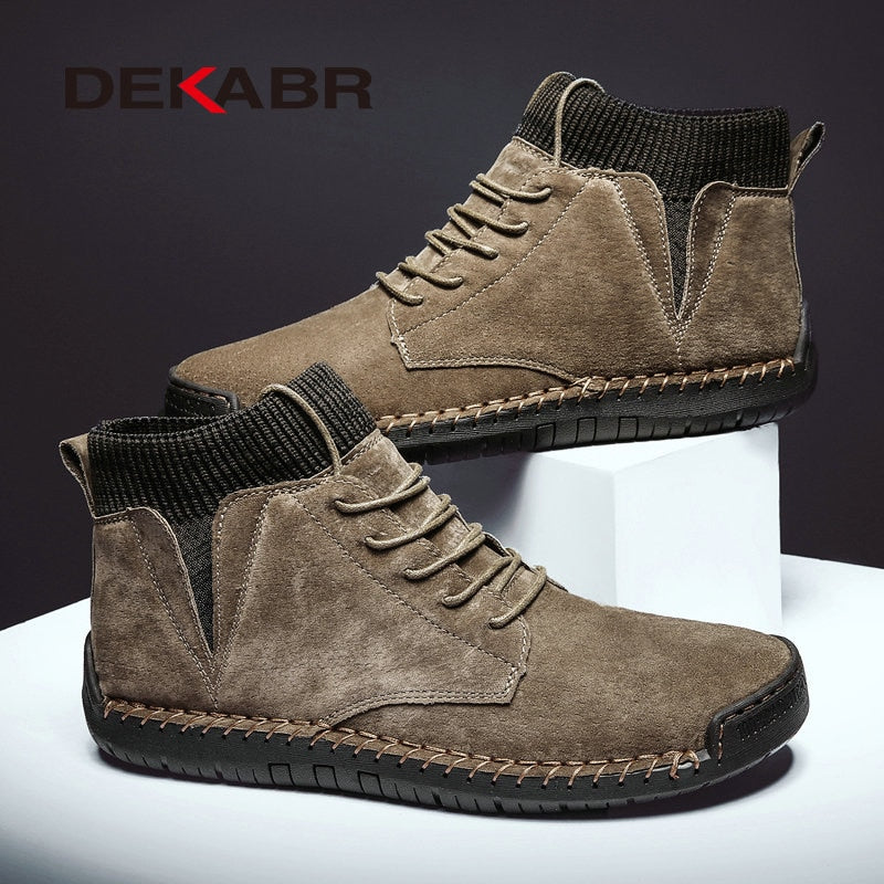 DEKABR Brand Men Snow Boots Winter Plush Warm Men Motorcycle Boots Lace-Up Non-slip Male Ankle Boots Autumn Man Work Shoes