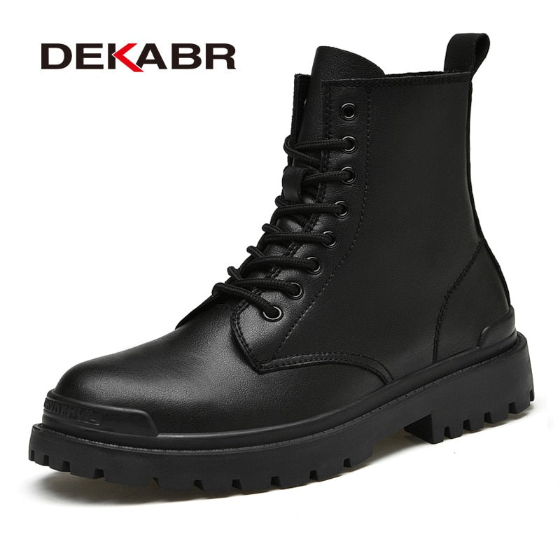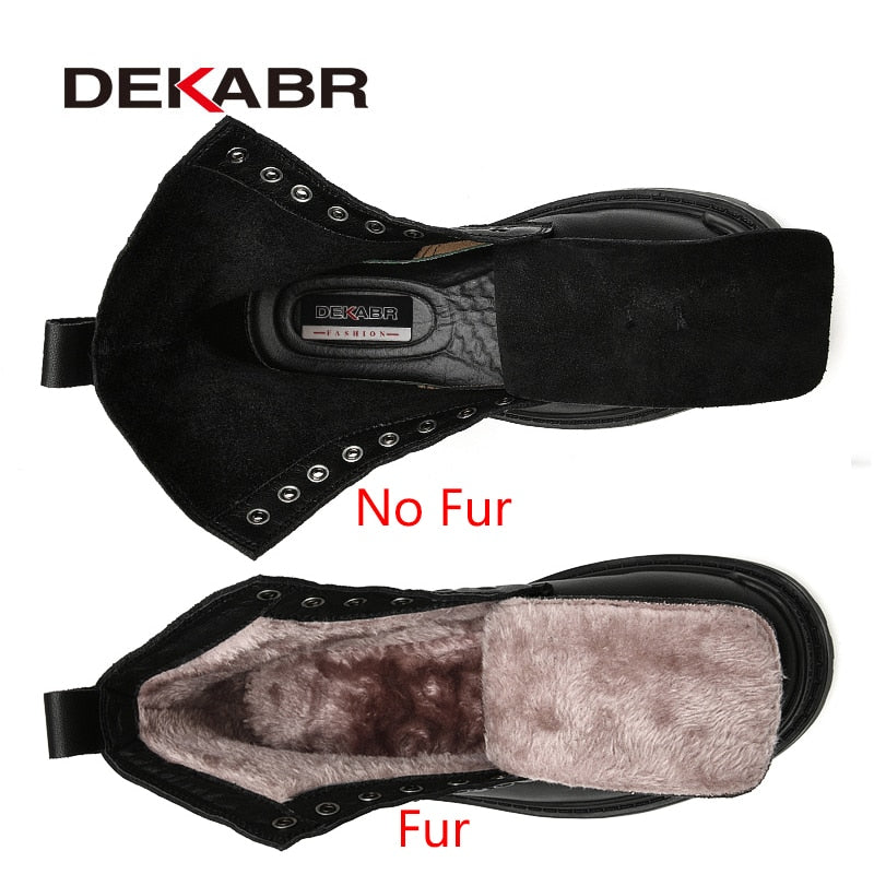 DEKABR Genuine Leather Men's Ankle Boots High Top Shoes For Men Winter Fashion Male Motorcycle Footwear Snow Boots Size 38~48