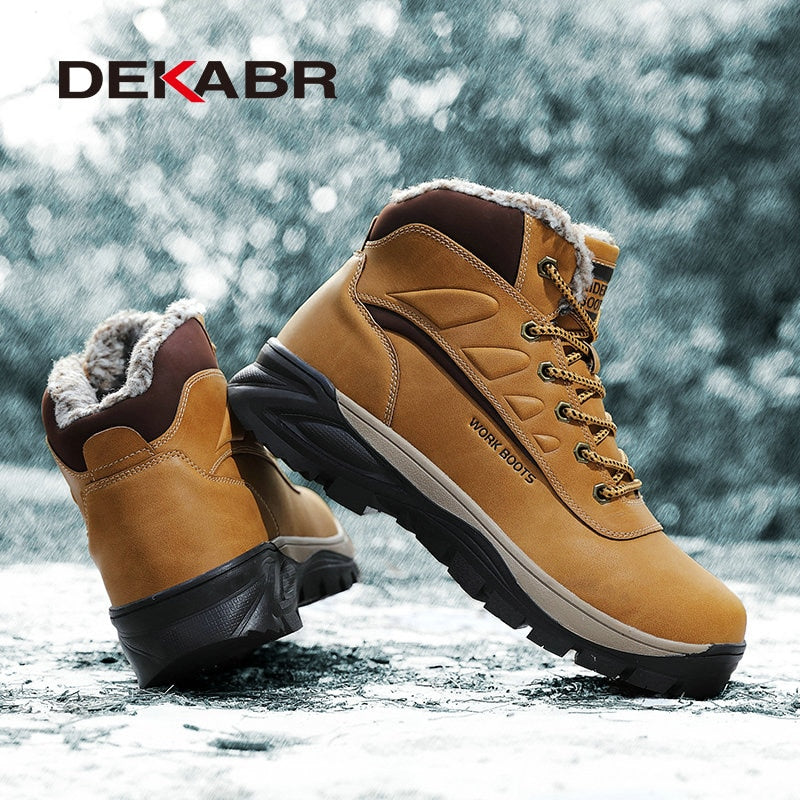 DEKABR Men High Quality Genuine Leather Boots Male Winter Casual Motorcycle Ankle Boots Men Lace-Up Boots Fashion Men Boots